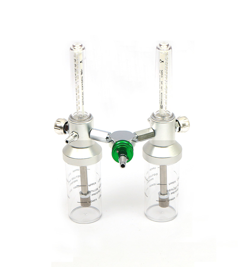 配套于醫(yī)用中心供氧系統(tǒng),供醫(yī)療單位急救給氧和缺氧病人氧氣吸入用。一分為二氧氣吸入器,一個進(jìn)氣接頭兩個出氧口,氧氣流量部分可獨(dú)立控制,互不影響。